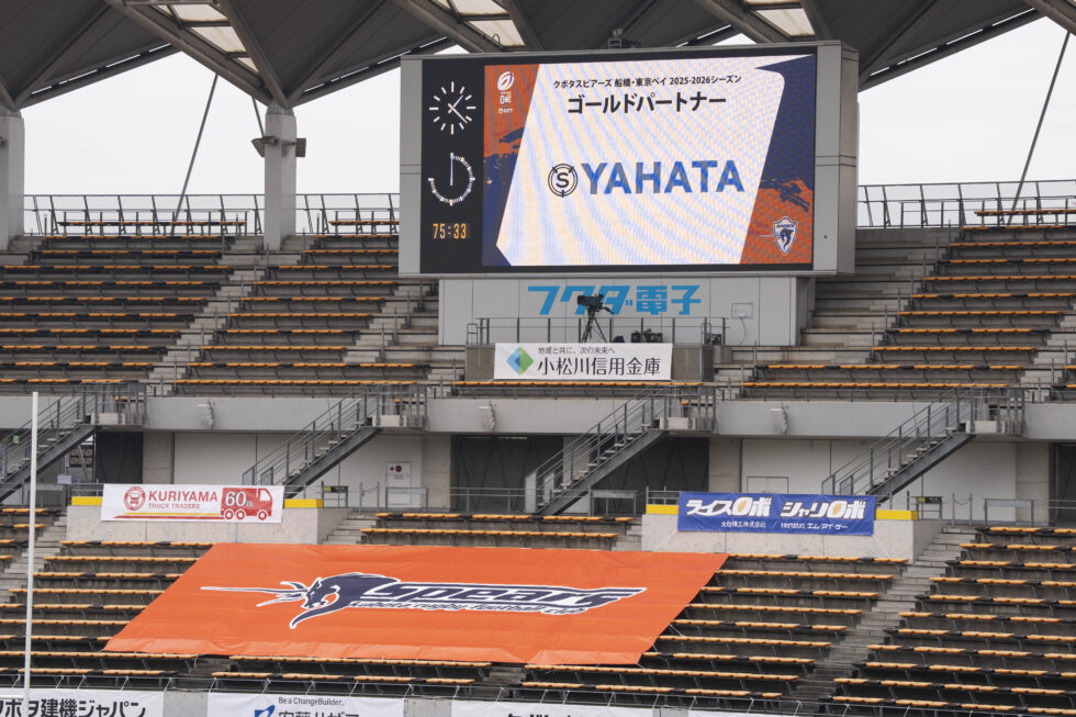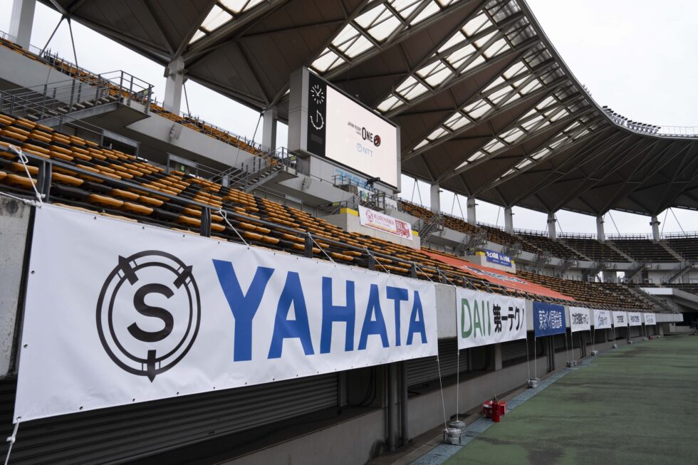 ↑ スタジアム内に当社のロゴ(YAHATA)が掲出されています!