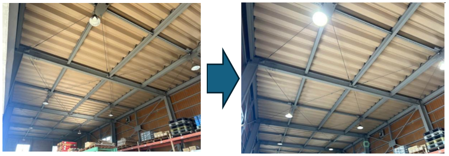 2024年2月~3月の間に実施いたしました5拠点のLED化に追加して、2025年10月〜11月にかけて伊那営業所(長野県伊那市)・松本営業所(長野県松本市)・刈谷営業所(愛知県刈谷市)・岡山営業所(岡山県岡山市)の4拠点で照明設備のLED化工事を実施いたしました。
